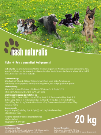 nash naturalis - Das natürliche, kaltgepresste Alleinfutter ohne Konservierungsstoffe vom Welpen bis zum Senior aus dem Hause Markus Mühle, hergestellt für die Zuchtstätten "Vom Seeheimer Wald" und "Von den Uhrmachern".
